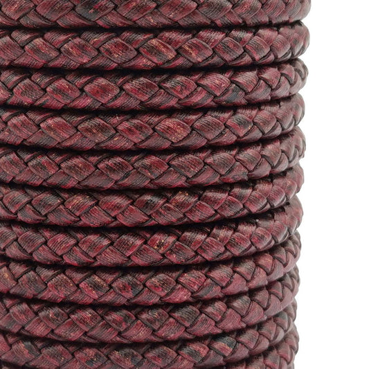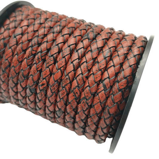 ShapesbyX-Geflochtene Lederschnüre, 6 mm, rund, Distressed Red, gewebtes, gefaltetes Lederarmband, Herstellung oder Dekoration