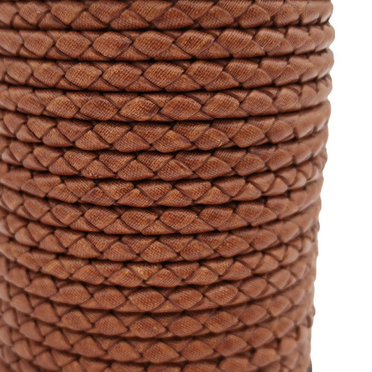 ShapesbyX-6 mm rundes, geflochtenes Leder-Bolo-Kordel, Distressed Tan, antike Farbe, Schmuckherstellung, Lederhandwerk