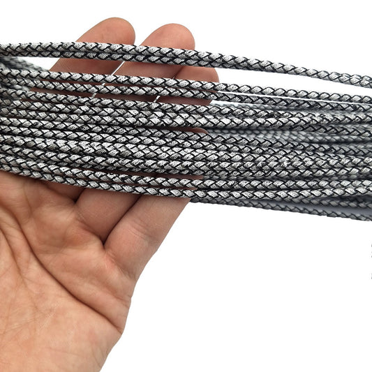 ShapesbyX-6 mm geflochtenes Leder-Bolos-Kordel zur Herstellung von Armbändern, Antikschwarz