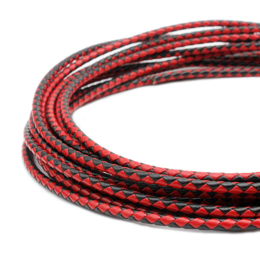 ShapesbyX-Geflochtene Lederschnüre, 4 mm, rund, Schwarz und Rot, gemischt, Schmuckherstellung, Bolokrawatte