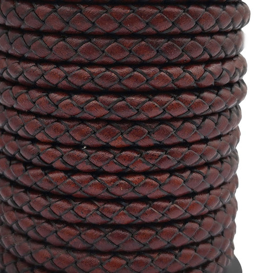 ShapesbyX 6 mm geflochtene Leder-Bolo-Schnüre, geflochtenes Armband zur Herstellung von Antik-Rotbraun