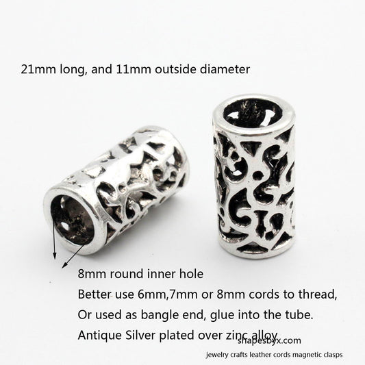 ShapesbyX-Bracelet Making Sliders Tube Crafts Hair Beading Pendant Sliders 7mm Hole 2 Pieces Antique Silver
