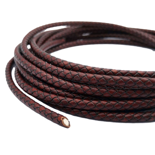 ShapesbyX-Braided Leather Bolo Cord 5mm Round Antique Red Brown Bracelet Making Jewelry Leather Strap