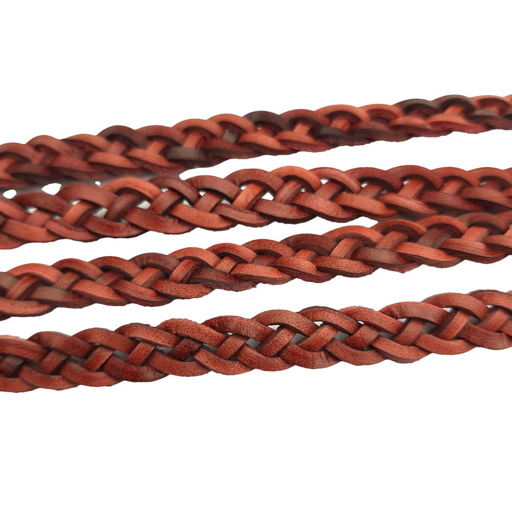 1 Yard 12mmx4mm Distressed Red Brown Braided Leather Strip for Jewelry Making, Ties or Dog leash