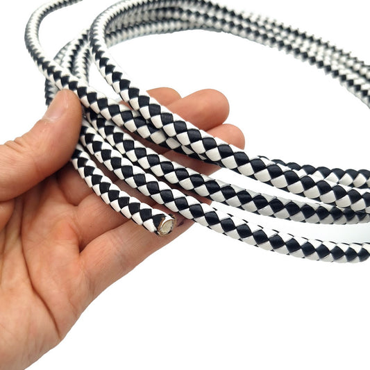 shapesbyX-Black White Mix 8mm Braided Leather Bolo Cord Bracelet Leather or Home Décor
