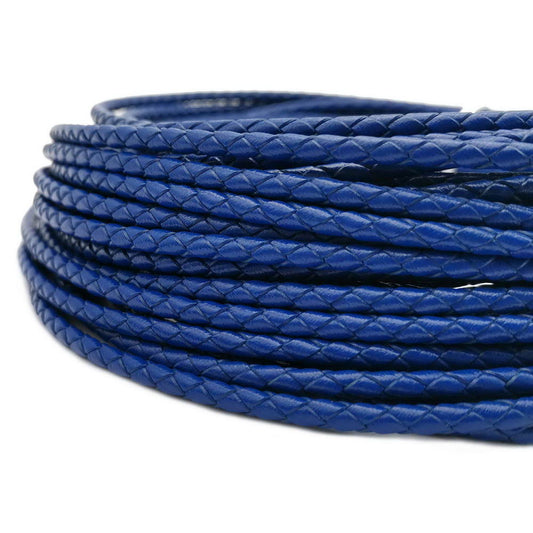 ShapesbyX-cordons en cuir tressés 4mm rond bleu royal fabrication de bijoux Bolo cravate Bracelet bracelet en cuir