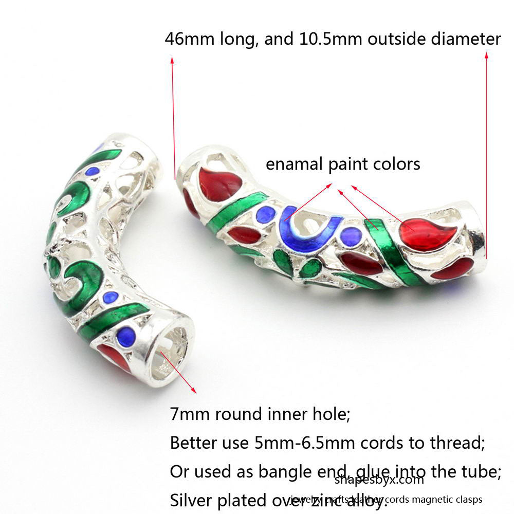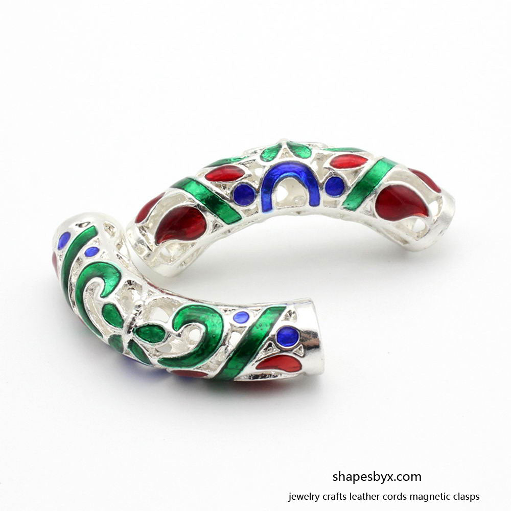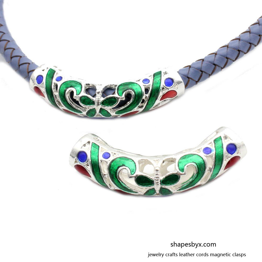 shapesbyX-2pcs 7mm Hole Silver Sliders with Blue and Red Pattern, Bracelet Necklace Pendant Tube Butterfly Slider Beading