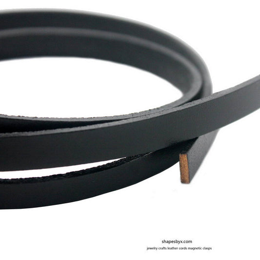 ShapesbyX-8mm Flat Leather Cord 8x2mm Leather Strip Genuine Leather Band Black