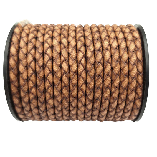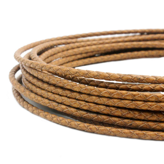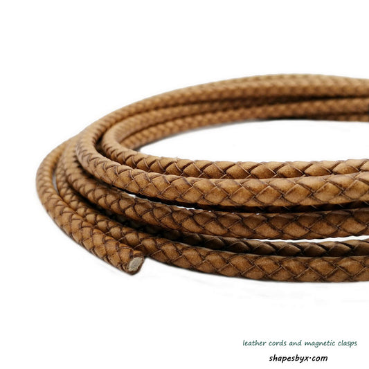 ShapesbyX-Braided Leather Bolo Cord 3mm Round Distressed Tan Woven Folded Leather Strap Jewelry Making