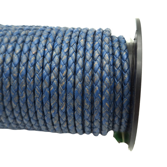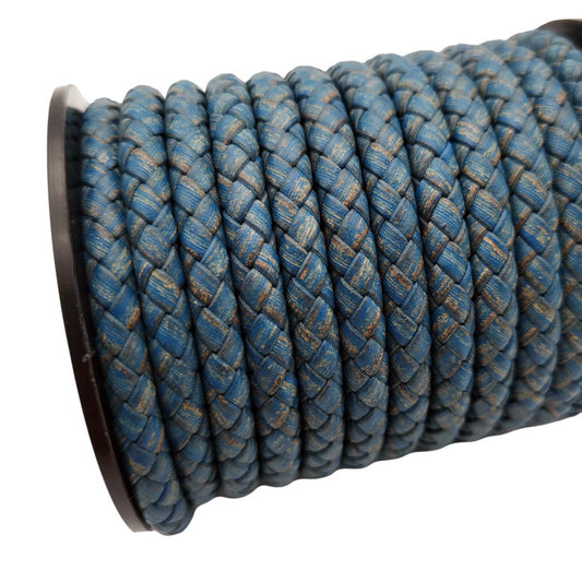 Distressed Royal Blue Braided Leather Cord Leather Bolo Strap 6mm Round for Bracelet Making
