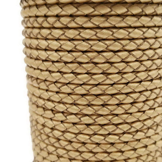 ShapesbyX-Bright Gold Leather Cord 3mm Round Woven Braided Folded Leather Bolo Tie