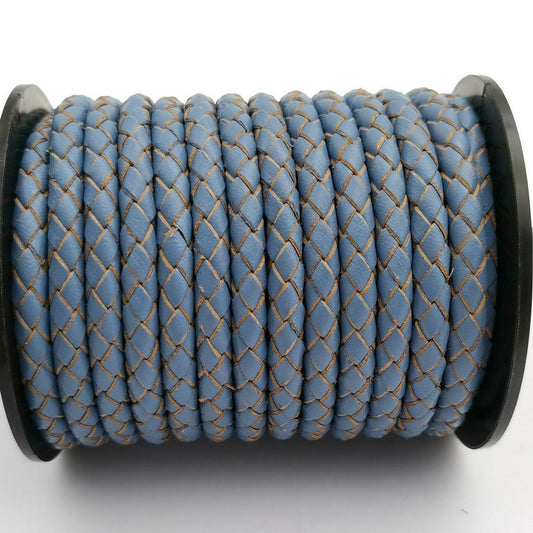 ShapesbyX-Braided Leather Bolo Cord 5mm Round Jean Blue Bracelet Making Jewelry Leather Strap