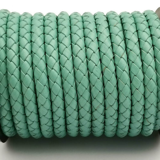 shapesbyX-6mm Round Braided Leather Cord Turquoise Folded Leather Strap for Jewelry Making