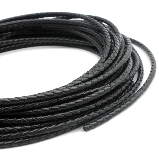 shapesbyX-4mm Leather Bolo Cord Braided Leather Strap Black Jewelry Making or Bolo Tie