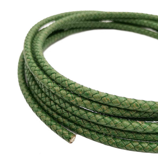 ShapesbyX-Braided Leather Cords 6mm Round Distressed Green Woven Folded Leather Strap Bracelet Making
