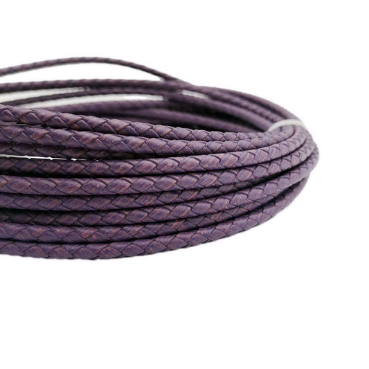 shapesbyX-Distressed Purple 4.0mm Round Braided Leather Bolo Cords for Jewelry Making Bolo Ties