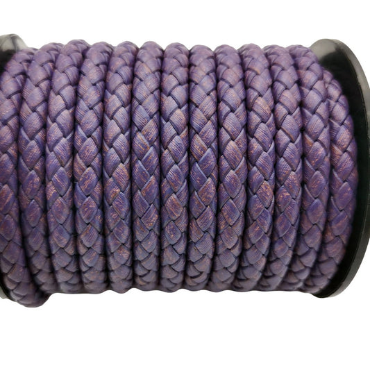 shapesbyX-5mm Round Braided Leather Cord Bracelet Making Woven Folded Leather Strap Distressed Purple