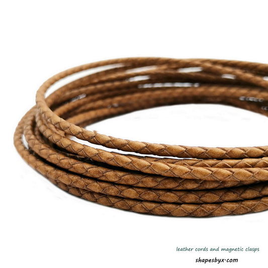 shapesbyX-4mm Braided Leather Cords Distressed Tan Round Leather Strap Bracelet Necklace Making Bolo Tie