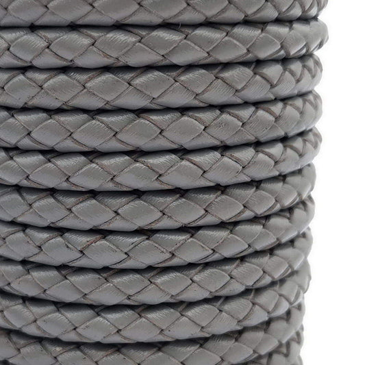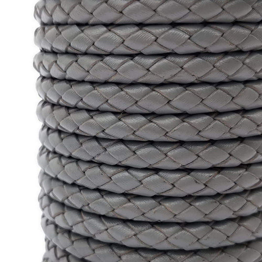 shapesbyX-6mm Round Folded Leather Cord for Braided Bracelet Making Gray Leather Bolo Cord