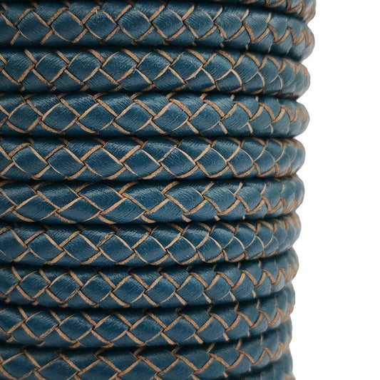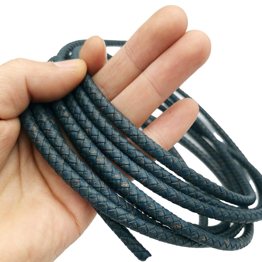 shapesbyX-6mm Round Braided Leather Bolo Cord Distressed Blue Antique Color Jewelry Making Leather Craft