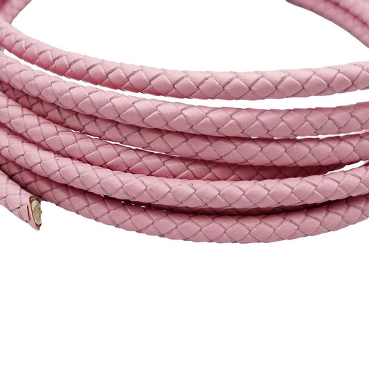 Pink Braided Leather Cord Folded Leather Bolo Strap 6mm Round for Bracelet Making