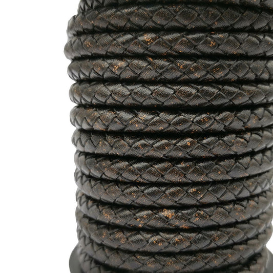 ShapesbyX-Braided Leather Cords 6mm Round Distressed Black Woven Folded Leather Strap Bracelet Making or Decor