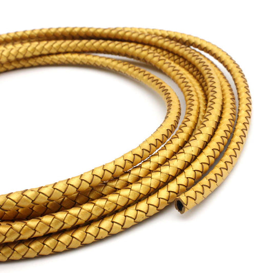shapesbyX-6mm Round Braided Leather Bolo Cord Gold Jewelry Making Leather Craft