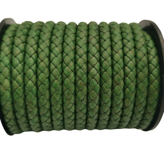 shapesbyX-Distressed Green 8.0mm Round Braided Leather Bolo Cords for Bracelet Making