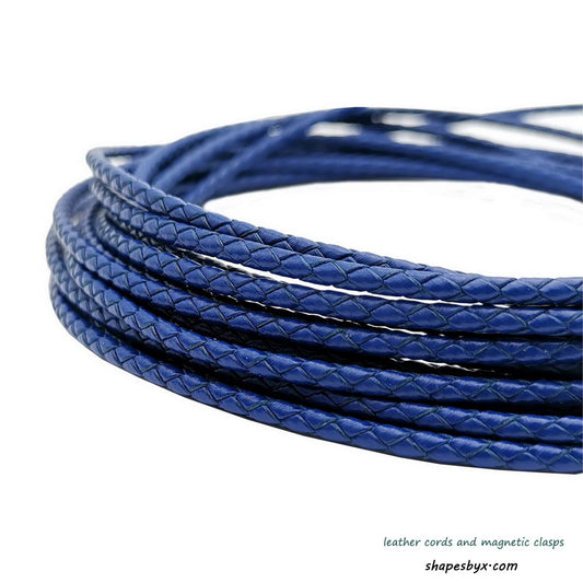 shapesbyX-3mm Braided Leather Cords Royal Blue Round Leather Strap Bracelet Necklace Making Bolo Tie