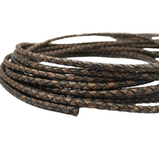shapesbyX-4mm Braided Leather Cords Deep Weathered Round Leather Strap Bracelet Necklace Making Bolo Tie